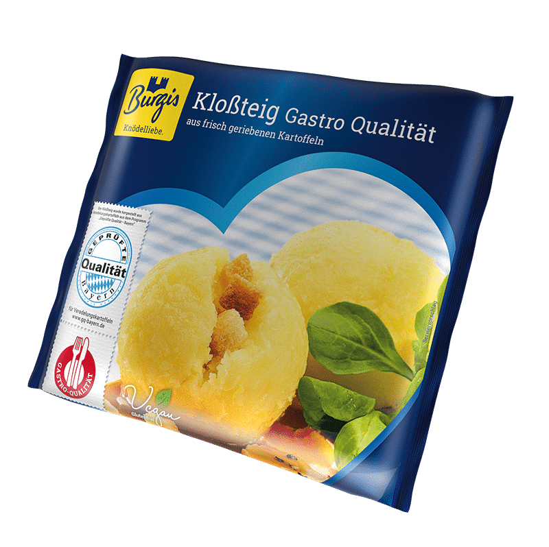 Das Premium-Produkt, hergestellt aus frisch geriebenen Kartoffeln, macht schon beim Zubereiten richtig Spaß. Burgis Kloßteig ist ein wahrer Klassiker und eignet sich hervorragend als Beilage zu Soßengerichten wie Schweinebraten, Wild, Geflügel und Sauerbraten.