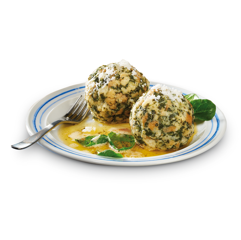 Spinatknödel in ausreichend großen Topf in kochendes Salzwasser geben. Mit Deckel mindestens 15 Minuten köcheln lassen.