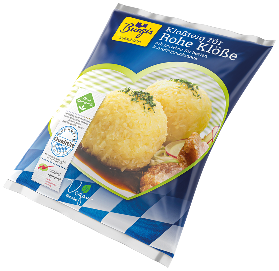 Für alle, die es rustikal lieben: Der Kloßteig aus 2/3 rohen Kartoffeln ist die ideale Grundlage für herzhafte, vollmundige Klöße. Mit diesem Kloßteig für rohe Klöße wird jeder Happen zum Genuss und vereint ursprünglich-bayerische Küche mit modernem Geschmackserlebnis. Der Kloßteig garantiert eine fein abgestimmte, lockere Konsistenz und verleiht den Klößen eine angenehm bissfeste Textur. Wir verarbeiten dafür ausschließlich hochwertige, vorwiegend festkochende Kartoffelsorten zu 100 % aus Burgis kontrolliertem Vertragsanbau – natürlich ausschließlich aus Bayern. So entstehen echte Genussmomente, die den bayerischen Traditions-Kloß perfekt in Szene setzen.