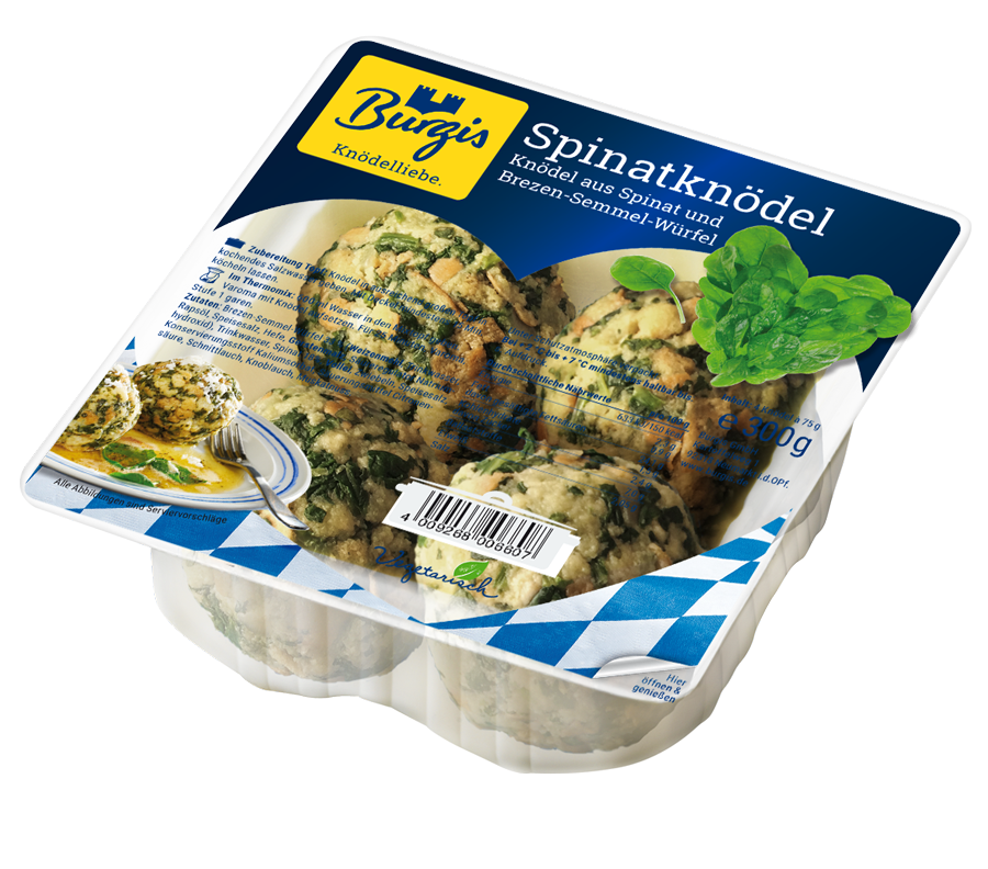 Mit dem Burgis Spinatknödel werden auch amerikanische Comic-Helden schwach, äh stark. Hergestellt aus erlesenen Spinatblättern, feinen Kräutern und echten bayerischen Brezen, erweitert dieser Spinatknödel das feine Burgis Geformte Knödel-Sortiment um eine besondere, grüne Köstlichkeit. Wer Spinatknödel kaufen möchte, findet bei Burgis eine unkomplizierte und leckere Lösung, die nicht nur schnell zuzubereiten ist, sondern auch hervorragend in Butter und Salbei oder als Beilage zu klassischen Bratengerichten schmeckt. Dieser Spinatknödel bringt eine frische und aromatische Abwechslung auf den Tisch, die zu vielen Gerichten perfekt passt.